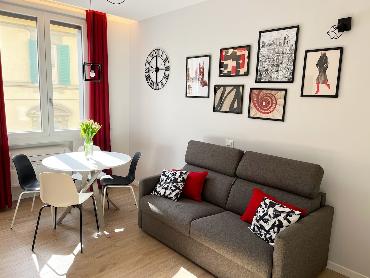 Luminoso e confortevole appartamento di 45 mq nel centro di Firenze, a soli 10 minuti a piedi dal Duomo e da 2 minuti dalla stazione ferroviaria di Firenze S.M.N. Secondo piano senza ascensore (attenzione non c'è ascensore, circa 44 gradini) di una caratteristica palazzina del 1500. Ingresso, soggiorno con divano letto singolo, cucina , bagno con doccia, camera matrimoniale, ripostiglio con lavatrice, Riscaldamento, aria condizionata, wifi, smart TV. Può ospitare al massimo 3 persone.