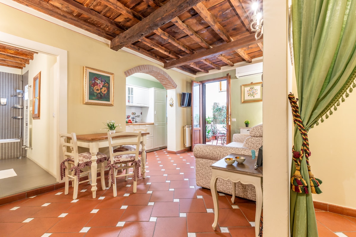 Tuscan Retreat: Design meets Tradition ⚜️ Experience authenticity in this bright apartment featuring exposed beams and original terracotta. Relax in the spacious living room or the finely detailed master bedroom. Unique Comforts: • Dual Bathrooms: Modern black marble + rustic with bathtub. • Amenities: Full kitchen, AC, and ultra-fast Wi-Fi. A peaceful oasis in the heart of Florence, perfect for your stay. Book your Florentine experience now!