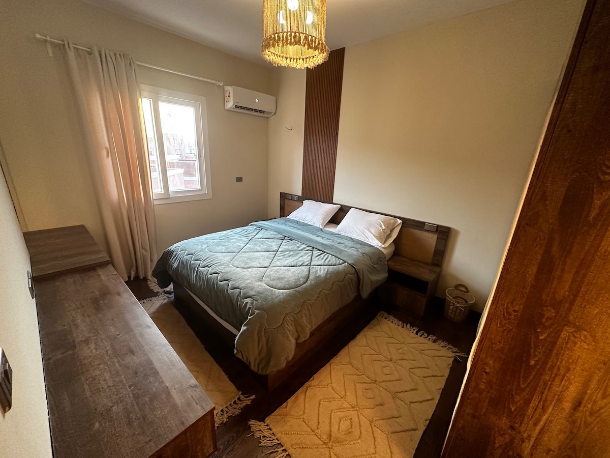 Wake up just minutes from the Pyramids in this comfortable and well-located stay. Guests love the clean, spacious rooms,the friendly and welcoming atmosphere, the breathtaking rooftop views of the illuminated Pyramids at night.The family-run hospitality ensures a warm,home-like experience, and the delicious local breakfast is an added bonus. Whether you're exploring the sights or looking for a quiet retreat, this place offers a perfect blend of comfort, convenience, and authentic Egyptian charm.