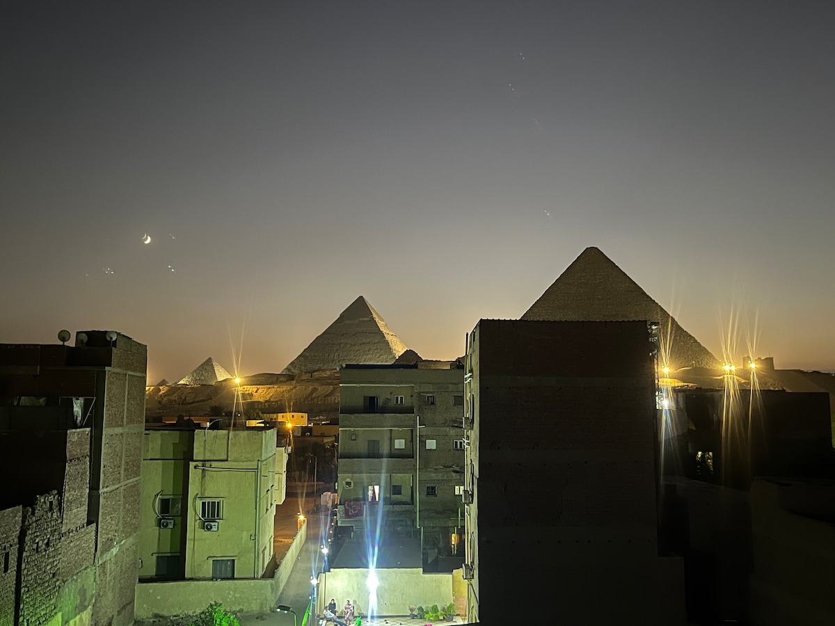 Enjoy your stay with Panoramic View of the giza pyramids and sphinx Yes! view and pictures are all 100% real. (Be sure to check out our other listings too) Indulge in a stunning view of all the Giza Pyramids from anywhere within this contemporary oriental studio or while relaxing in the Jacuzzi. It is also a 10 min walk from the Pyramids entrance gate. To make the most of your trip, make sure to check out our experiences! We're committed to providing our guests the magical hospitality