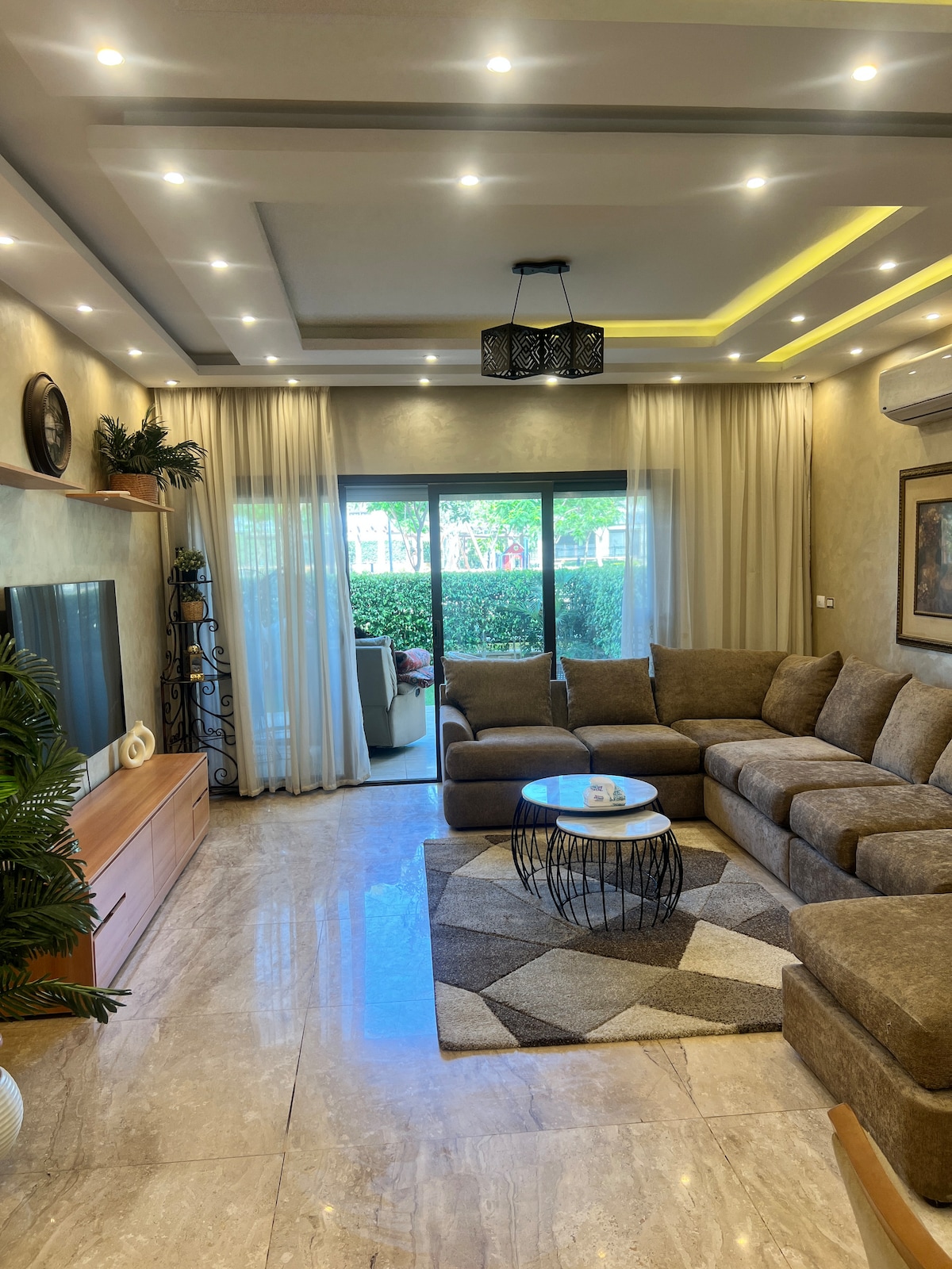Enjoy the resort luxury living where lush greenery walks has no end while creating a memorable relaxation and enjoyable moments in the 3 high end pools including all ages and adults only pools, along with being close to all the city attractions points where famous shopping malls, it’s 25 minutes away from the Grand Egyptian Museum by Ubers! Our apartment is located in the heart of one of the most well known luxurious residential compounds where you can roam or have a lovely walk anytime safely!