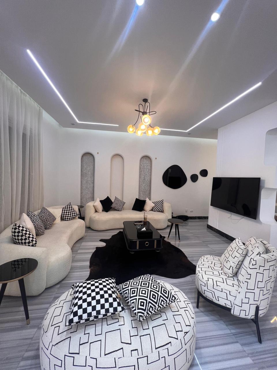 Welcome to our charming villa in Sheikh Zayed City, Egypt. This spacious and luxurious air conditioned villa is perfect for families or groups seeking a comfortable stay. It features 3 bedrooms, including a master bedroom with an ensuite bathroom. The villa also offers a large reception area and a separate living room with a sofa bed. Stay entertained with 3 smart TVs with Netflix access, and stay connected with high-speed internet, fully equipped kitchen. Enjoy the villa's generous backyard.