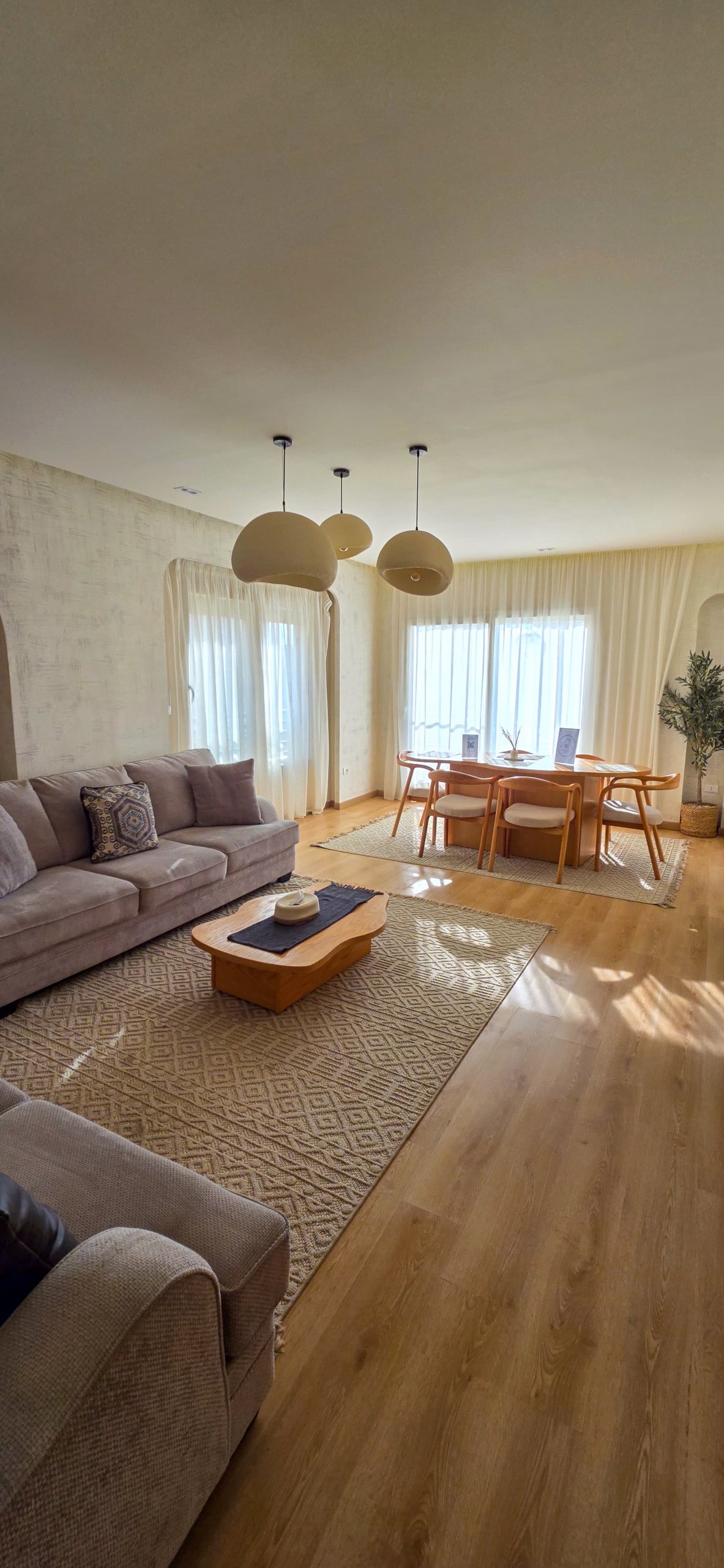 Welcome to your home away from home in the heart of El Motamyez District, 6th of October. This newly renovated and thoughtfully designed 3-bedroom apartment blends comfort, style, and practicality for families, business travelers, and long-stay guests. All rooms include wardrobes for convenient storage, and each is fitted with an AC unit (heating & cooling) for year-round comfort
