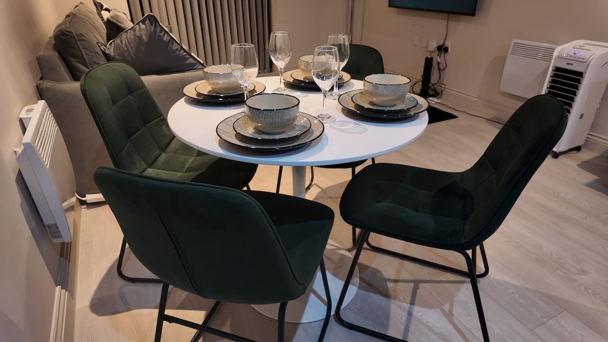 Peaceful & Comfortable - A spacious, thoughtfully designed space for both business & leisure guests. Cozy & Well-Equipped – Everything you need for a home away from home experience. Perfect Location – Steps away from shopping, dining & top city attractions! Perfect for long stays, ideal for remote work, students, NHS workers, contractors, business travel ready, dedicated workspace and stable WiFi. PARKING: Q-Park The Light – just a 2-minute walk from the property or NCP The Core Car Park.