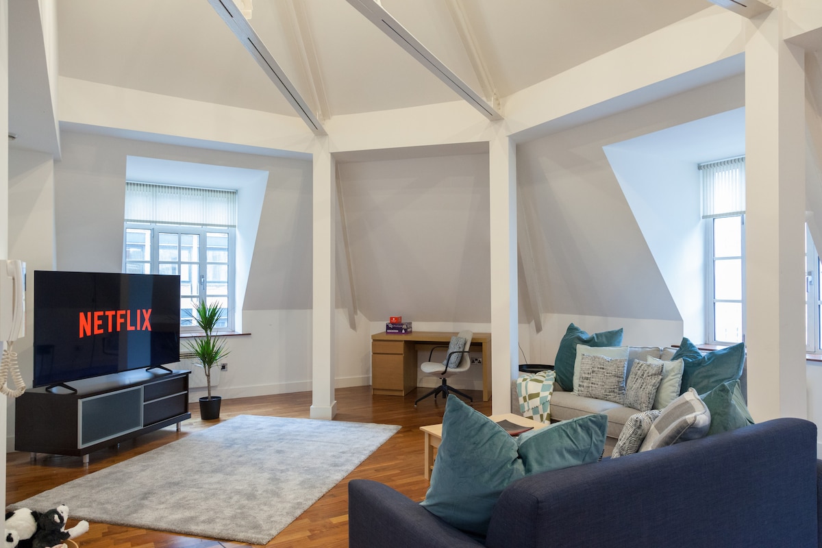 A stylish city-centre loft with exposed beams, luxury tech, and unique touches. Enjoy a 55” Sky Glass TV with full Sky, Netflix & more, a 27” 5K iMac workstation, and a sweet shop for all ages. Sleeps up to 5 with comfy beds, full kitchen, new bathroom, and fast Wi-Fi. Walk to shops, restaurants, and attractions. Car park 30 secs away. Second-floor (stairs only). Self check-in. Vibrant area—light sleepers note urban sounds. Mid-stay check applies to stays over 3 nights.
