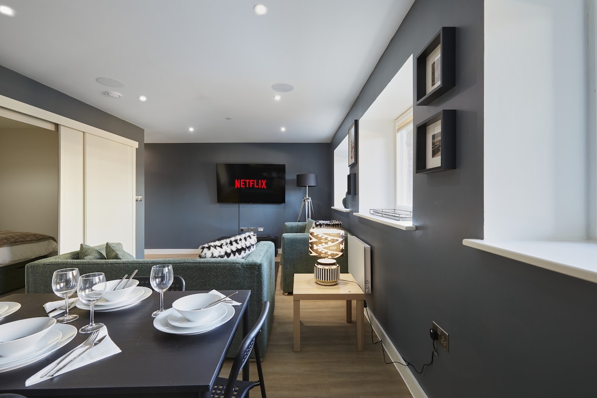 Peaceful & Comfortable - A spacious, thoughtfully designed space for both business & leisure guests. Cozy & Well-Equipped – Everything you need for a home away from home experience. Perfect Location – Steps away from shopping, dining & top city attractions! Perfect for long stays, ideal for remote work, students, NHS workers, contractors, business travel ready, dedicated workspace and stable WiFi. PARKING: Q-Park The Light – just a 2-minute walk from the property or NCP The Core Car Park.