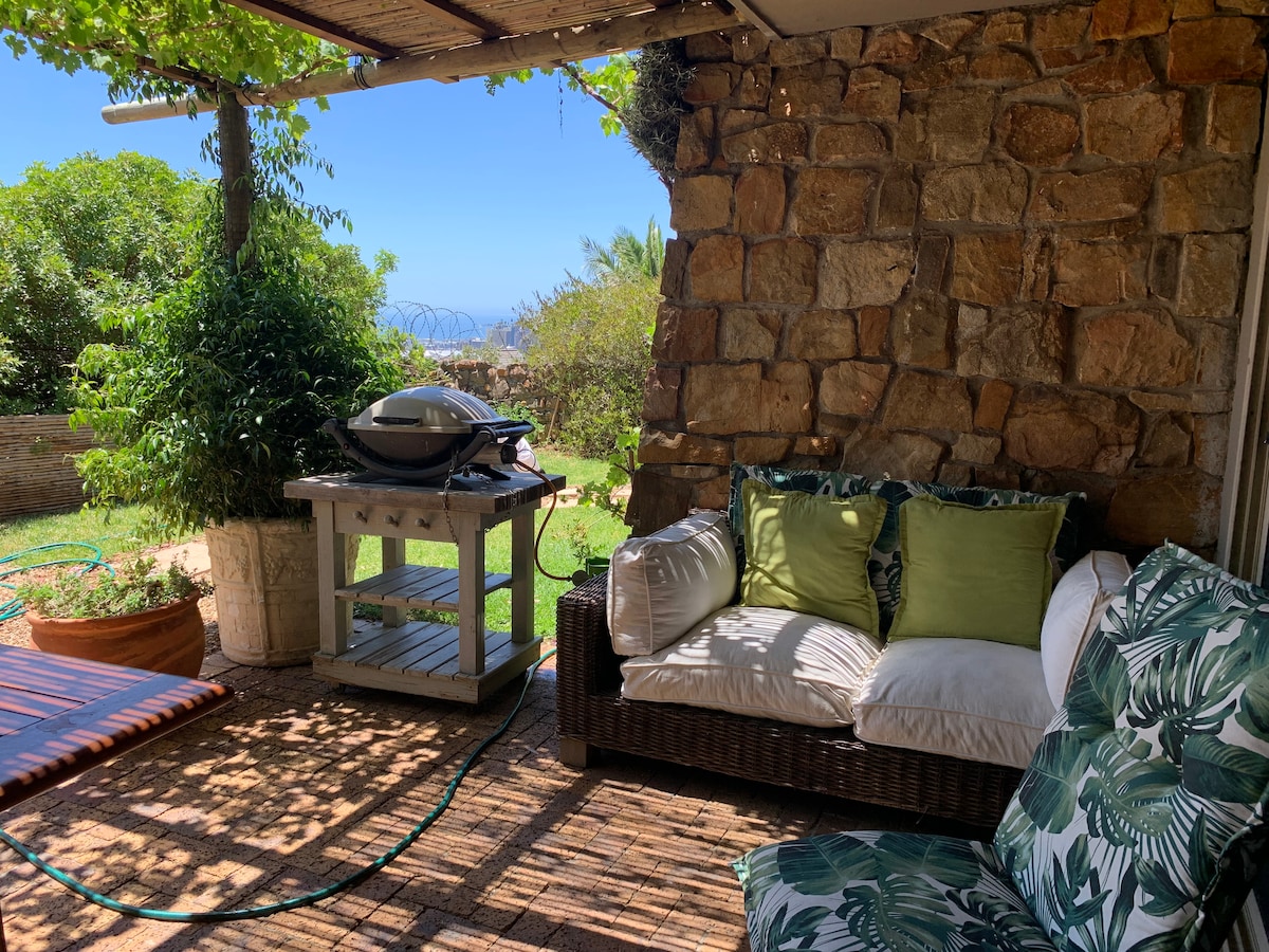 Enjoy a comfortable stay in our delightful & tastefully decorated Guest Suite Located in a quiet & rural setting (private access) Solar (backup battery - loadshedding). Fast WiFi Comfortably sleeps 2 (with 1 child - sofa bed) Separate living area with kitchenette Access to our salt water pool, & lg peaceful garden Constantia is a leafy suburb of Cape Town; surrounded by beautiful & historic wine estates; peaceful walks in mountain & vineyards Centrally located to visit many areas of Cape Town