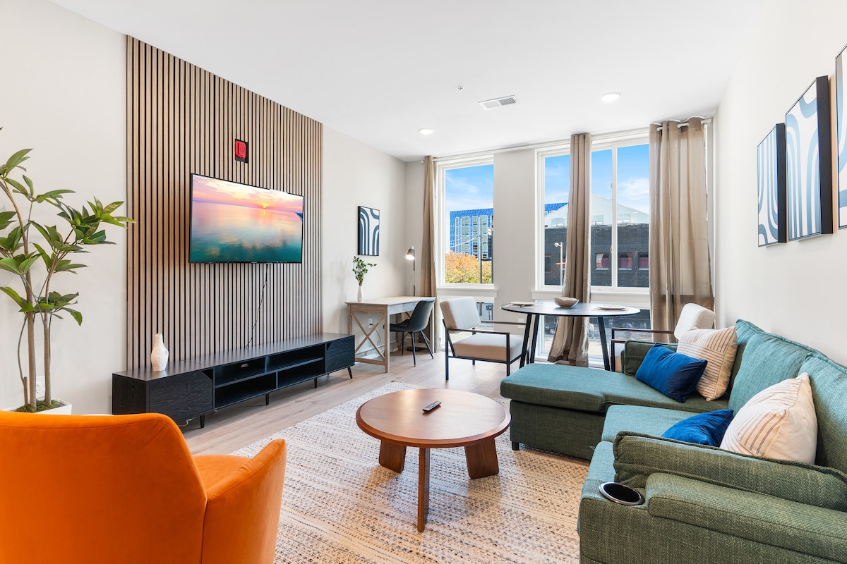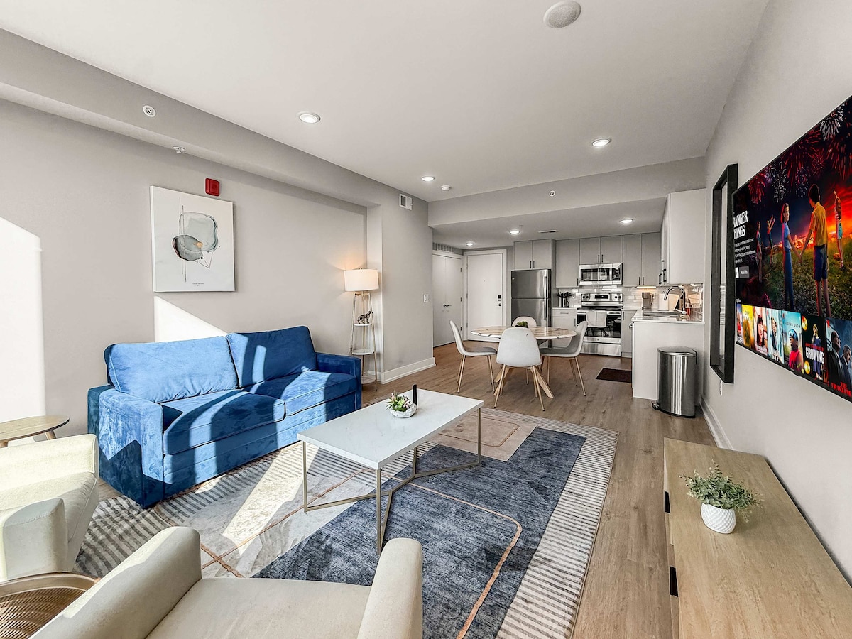 费城市中心附近的新公寓,配备标准双人床、沙发床和洗衣房