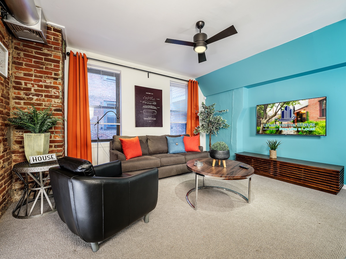 ✨ Walk to acclaimed restaurants & nightlife 🍿 Projector TV 🎶 5 min to The Fillmore & live music venues 🕰 10 min drive to Liberty Bell & Old City 🎨 12 min to Philadelphia Museum of Art & Rocky Steps Stay in the heart of Fishtown in this stylish 1-bedroom apartment that sleeps 4, featuring bold design, a spa-like shower, projector TV & cozy fireplace. Surrounded by top dining, craft breweries & coffee shops, you’ll be steps from the action and minutes from Philly’s iconic landmarks.