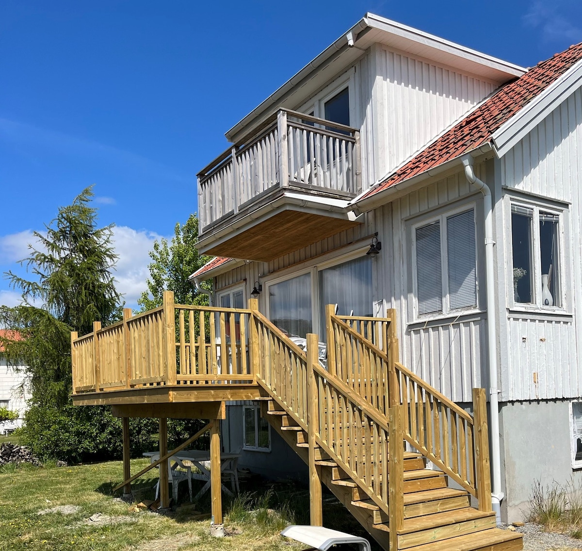 Comfortable holiday house for 6 pers, just outside Uddevalla, in the heart of the Swedish west coast. Perfect location with lots of privacy. Separate guesthouse available. Spacious terrace for sunbathing and evening bbq. You will love swimming in the fjord. Private beach and jetty (for the neighbourhood). Open fireplace and unlimited Wi-Fi. The house is also super cosy during the winter with an open fire place, warm bath in the hot tub and the sauna. A fantastic place to reflect over life.