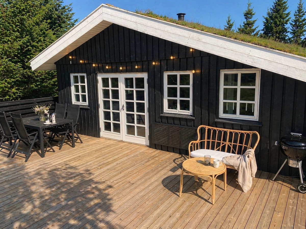 New cozy summerhouse from 2009 at North Sea Denmark in the middle of very nice nature dunes and trees near Løkken and Blokhus, only 350m from beautiful beach. Many nice terrace free from wind and neighbors There’s room for hole family and nice light and nature coming via the huge windows. Everything inside house are very good quality. Nice bathroom with spa for 1-2 persons, 13m2 Activity-room. Playground and minigolf only 100m away..... Price incl electricity, water, heating etc.