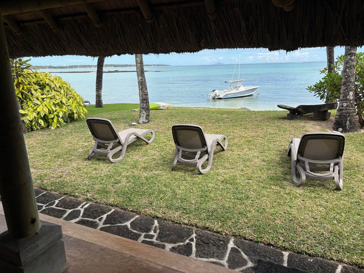 Villa spacieuse au charme tropical ‘pieds dans l’eau' située à l’est de l’ile sur la belle plage de Belle Mare. La villa est abritée des vents généraux et offre une vue splendide sur le lagon. La villa comprend au RDC un salon et salle à manger, une cuisine équipée, une salle de TV, toilettes invités, une salle à manger extérieure avec un salon kiosq/veranda. A l’étage, 3 chambres avec lit double (1m80) et salles de bains ensuite et 1 chambre avec lits jumeaux et salles de bains ensuite.