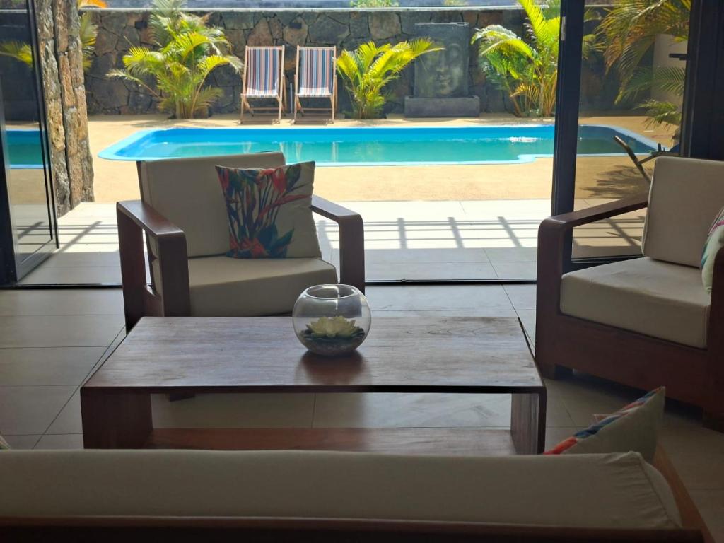 Turquoise villa une villa Chaleureuse et apaisante, idéal pour passe des bons moments en famille ou entre amis c’est plus qu’une déco magnifique ce une immersion dans le monde d’un grand artiste mauricien Elle se trouve à trois minutes en voiture de la plage deux minutes en voiture de Shangri-La hôtel trois minutes en voiture du centre de trou de douche à deux minutes de la baie qui mène à île aux cerfs, possède un parking privé et caméra extérieur existant