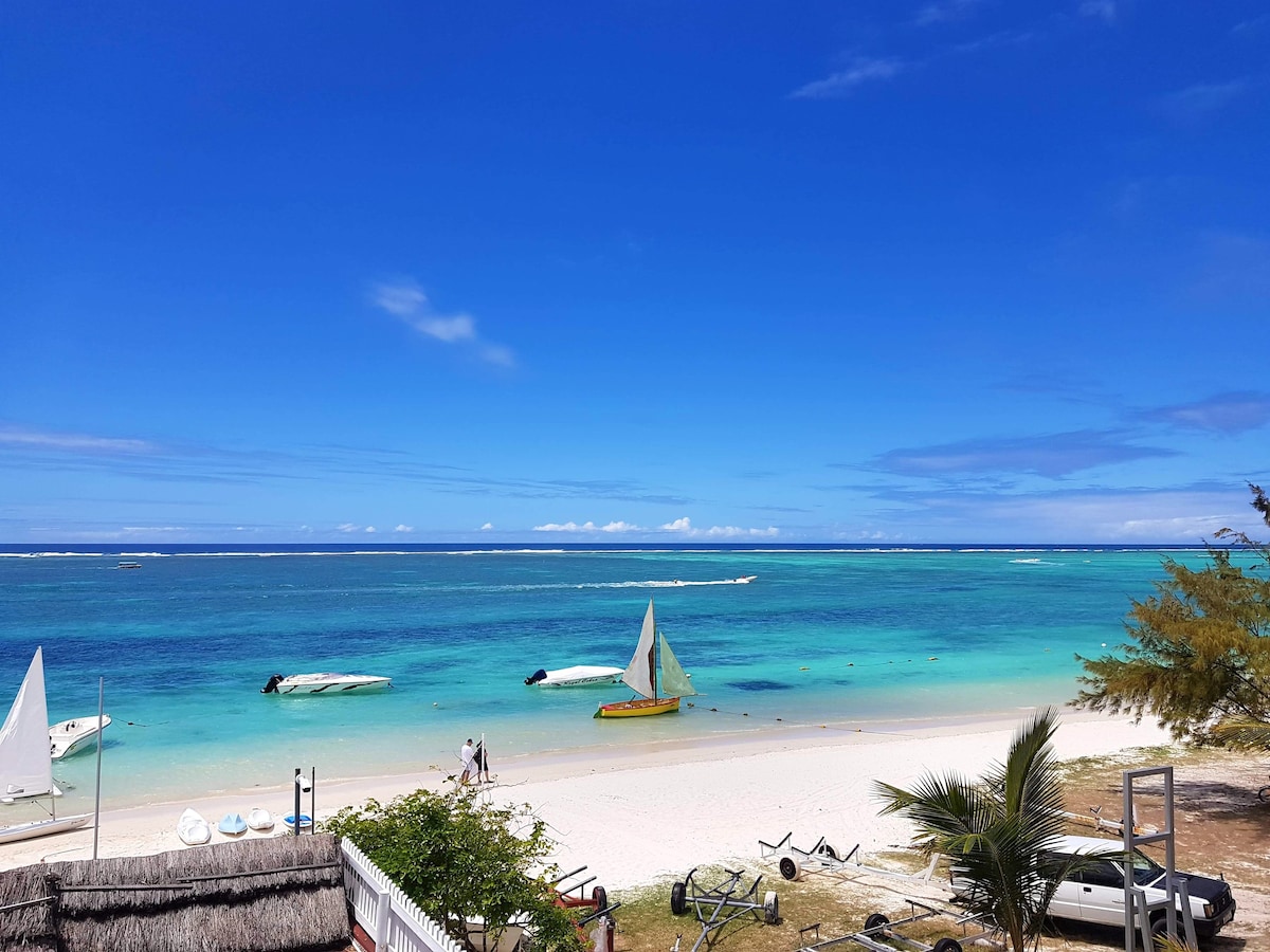 Our beach house sleeps 8 in 4 double bedrooms ( one ground floor ) plus a cot. RIGHT ON a beautiful safe long stretch of white sand, in the most desirable region of Mauritius, near restaurants & bars. Option of hot home cooked food delivered, nanny, therapist & driver all at low local rates. Enclosed private beach front garden, two outdoor dining areas, private parking in secure beachfront low level two story development. One of 26 privately owned units sharing large serviced pool and garden.