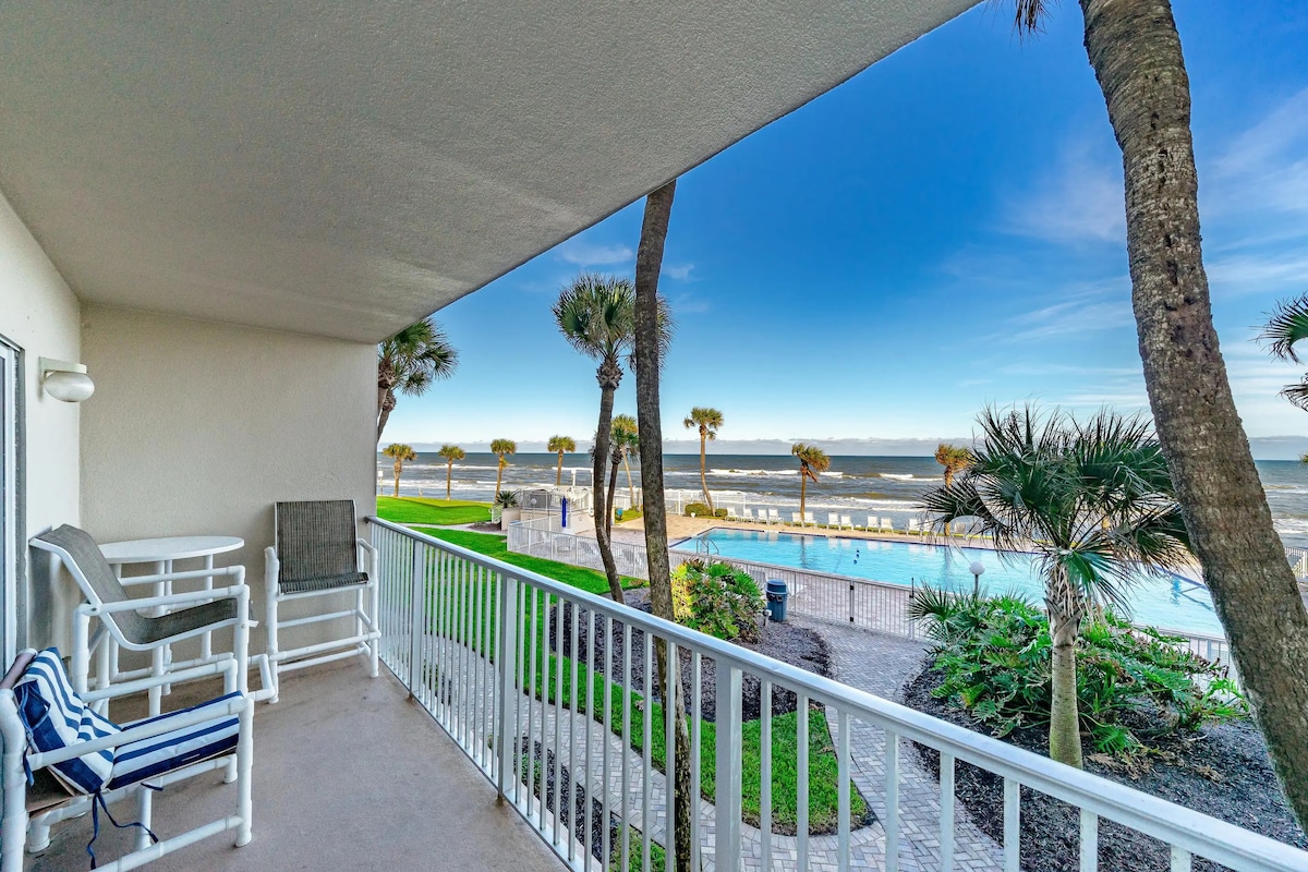 Welcome to our charming oceanfront beach condo in the enchanting town of Ormond Beach! Nestled in a tranquil setting, this idyllic retreat offers an unforgettable coastal getaway. Located in the peaceful neighborhood of Ormond Beach, you'll find an array of charming shops, delectable restaurants, and vibrant local attractions just a short drive away. Whether you're seeking outdoor adventures, or prefer exploring the rich history of the area, this town offers something for everyone.