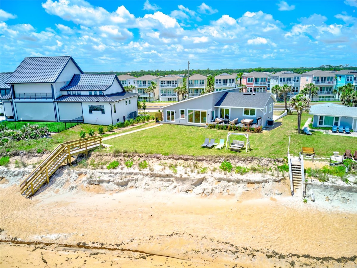 Welcome to your oceanfront escape in Beverly Beach, Florida—just north of Flagler Beach and ideally situated for peace, privacy, and panoramic views. This fully remodeled 3-bedroom, 3-bath beachfront home blends vibrant coastal design, thoughtful amenities, and direct access to your own private stretch of sand. Whether you’re planning a relaxing family vacation, a beach retreat with friends, or a restful work-from-anywhere stay, this home offers comfort, style, & unforgettable Atlantic sunrises.