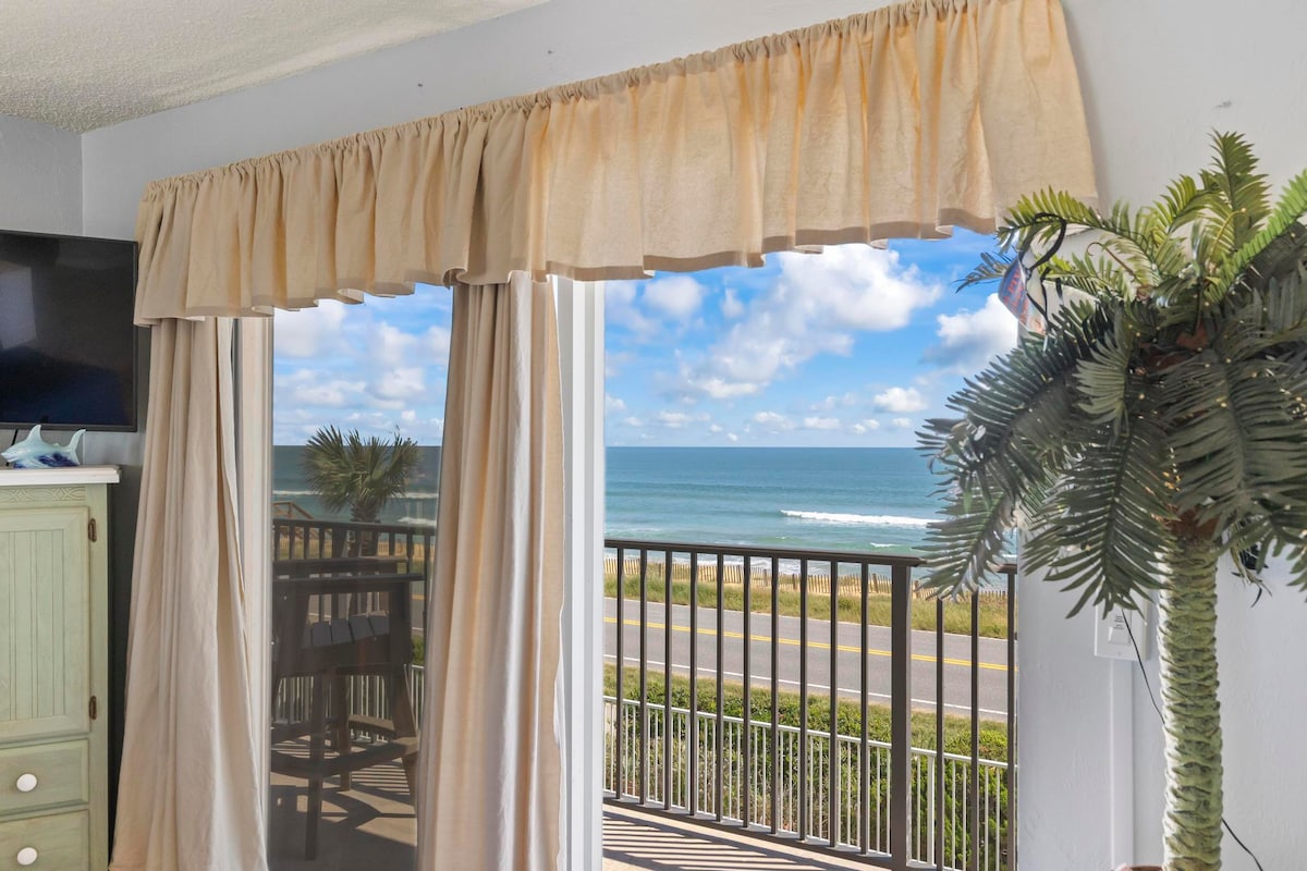 Just steps from the beach, this bright and spacious 2-bedroom, 2-bath direct oceanfront condo is your perfect coastal getaway. Wake up to panoramic ocean views, sip coffee on the large private balcony, and fall asleep to the sound of the waves. The condo is fully equipped including beach chairs and gear, washer and dryer, ultra-fast Wi-Fi, and free parking. Enjoy a newly renovated oceanfront pool, comfortable beds for up to six guests, and three large smart TVs for streaming your favorite shows.