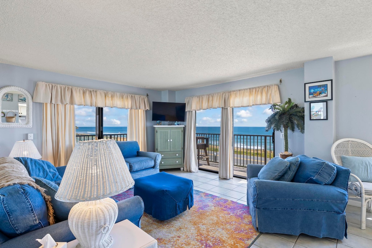 Just steps from the beach, this bright and spacious 2-bedroom, 2-bath direct oceanfront condo is your perfect coastal escape. Wake up to panoramic ocean views, sip coffee on the large private balcony, and fall asleep to the sound of the waves. The condo is fully equipped including beach chairs and gear, washer and dryer, ultra-fast Wi-Fi, and free parking. Enjoy a newly renovated oceanfront pool, comfortable beds for up to six guests, and three large smart TVs for streaming your favorite shows.