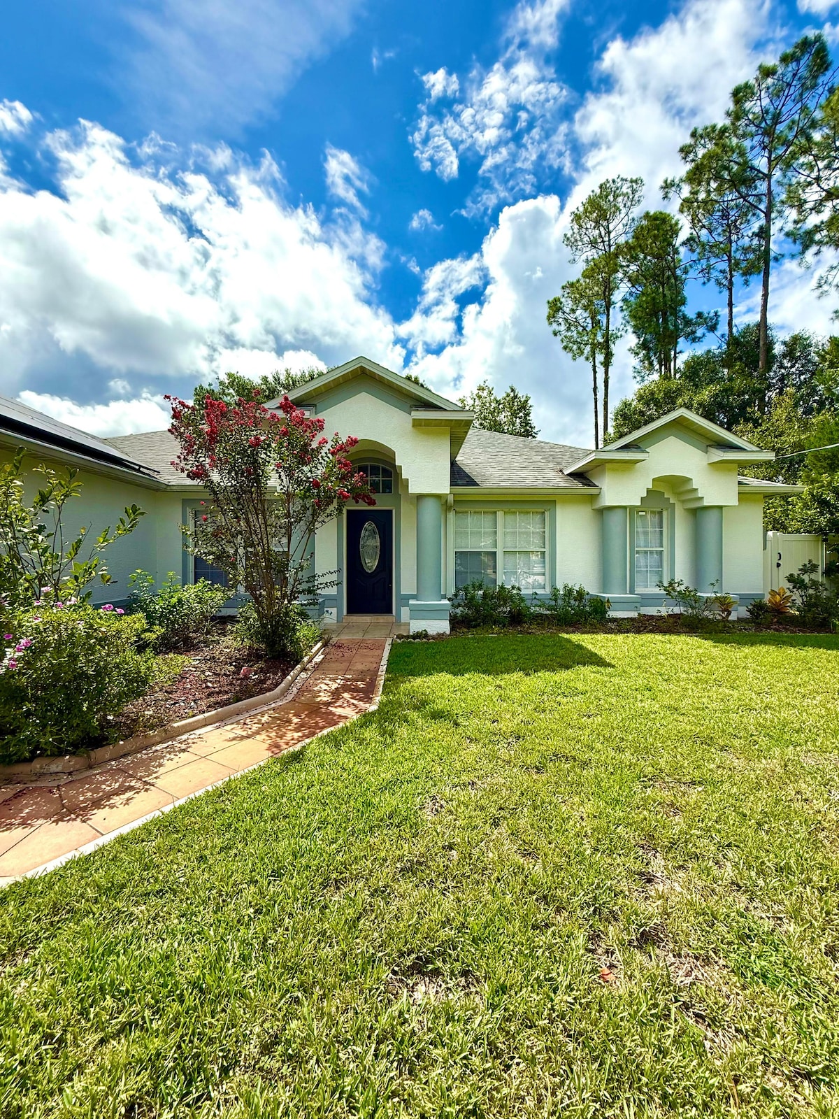 Dog-friendly home with a beautiful yard, patio & WiFi, close to golf and beaches! This single-level, 3-bedroom Palm Coast home is perfect for beachgoers and golfers alike, with world-class courses nearby and beaches like Varn and Flagler just a short drive away. Enjoy central AC, a sunroom with yard views, and a lovely backyard ideal for BBQs or relaxing on the patio. Inside, you'll find a well-equipped kitchen, multiple TVs, and space to unwind. Perfect for your Florida getaway! LBTR 34693