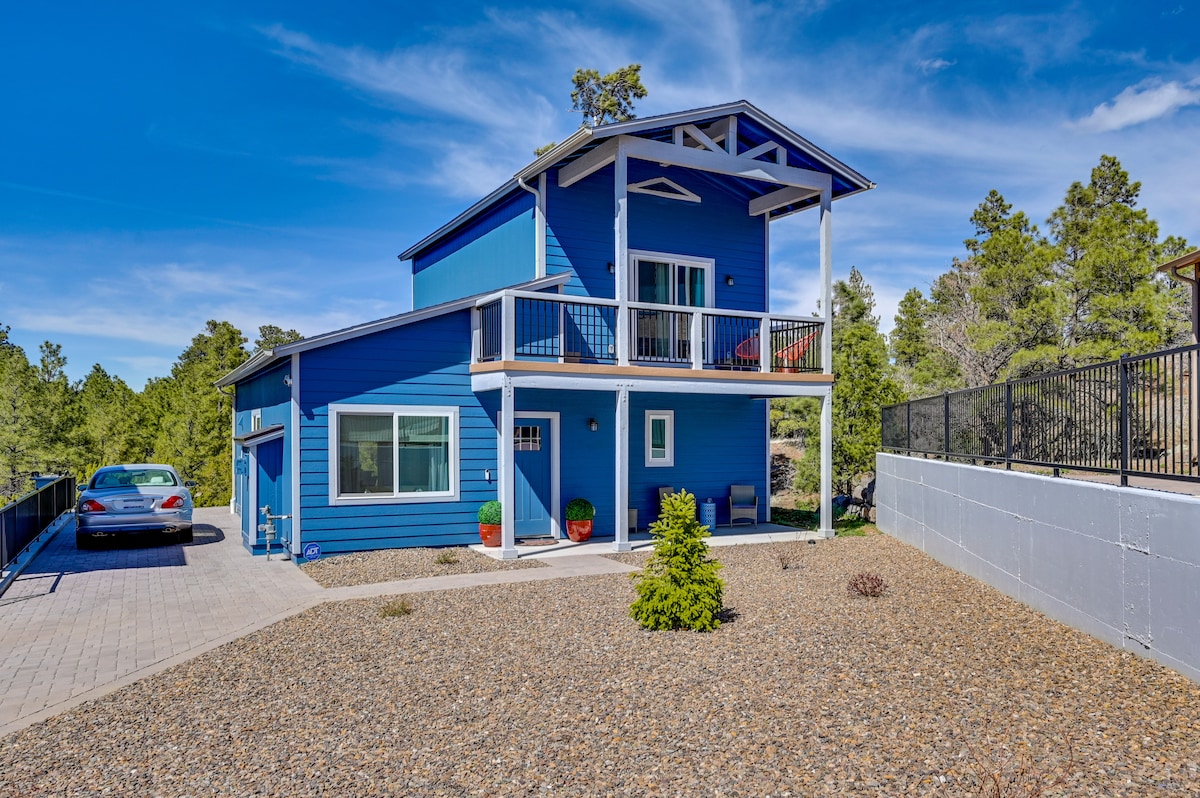 Retreat to this charming cottage in Flagstaff, Arizona, where you and your loved ones can gaze at tranquil mountain views from the balcony or the back patio’s fire pit. Downtown Flagstaff and the Lowell Observatory are nearby as well! After hiking through historical trails with breathtaking scenery, return to the 2-bedroom, 2.5-bathroom vacation rental and watch a movie by the fireplace. This cottage also features modern lighting, a workstation, and 2 living areas.