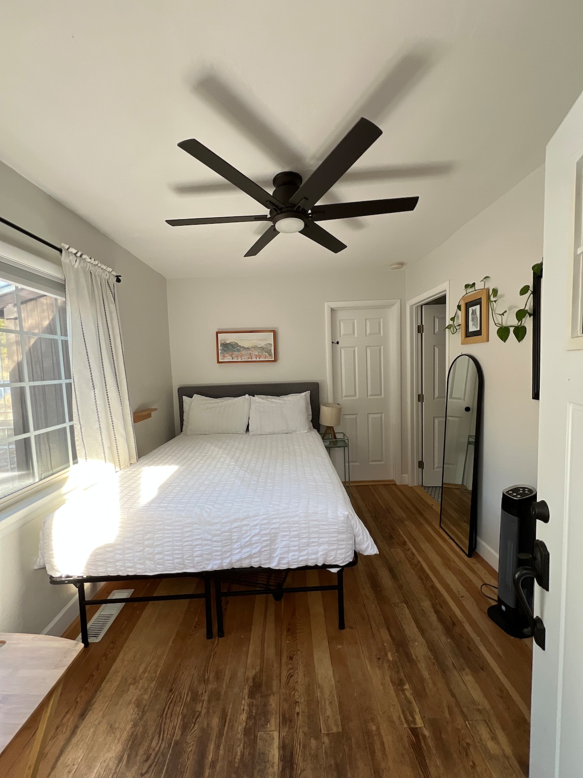 Walk through the gate into your private garden and entrance to a bright studio apartment, separate but attached to my home in a usually quiet Flagstaff neighborhood. Enjoy a covered porch; a sweet sleeping, sitting and work space; a full bath and stocked kitchen-ini (microwave, mini-fridge, toaster, electric kettle, and Macy's coffee). Just 3 miles from downtown and walking distance to Safeway, Cedar House Coffee shop, restaurants, Buffalo Park & forest trails. Dogs are welcome (no cats please).