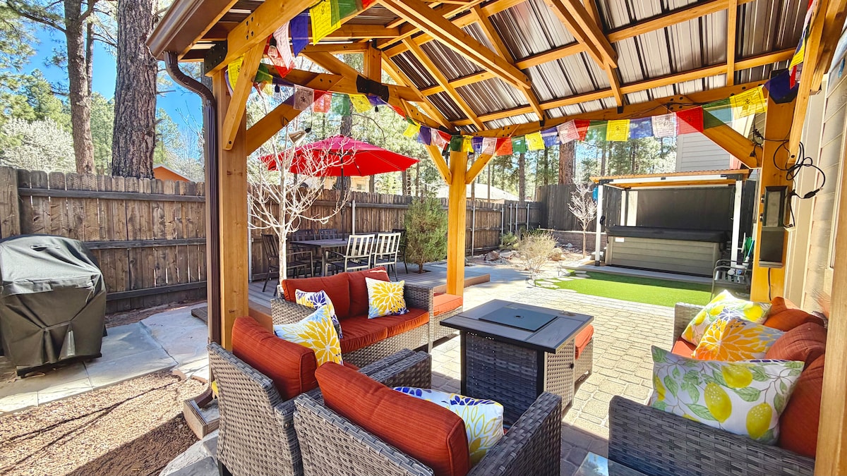 Recently renovated 3bed/2bath 1600 sq ft house at 7400 feet nestled in alpine meadow at the turnoff to Snowbowl. 12 min to downtown Flagstaff, 15 min to Snowbowl base, ~60 min to South Rim of Grand Canyon and Sedona. 240V/50A outlet in garage for your EV. High speed WiFi, YouTube TV. National forest access / endless trails right out the door! Experience peace and quiet during all 4 seasons on 2 meadowed acres with unobstructed views of the San Francisco Peaks right from the hot tub!