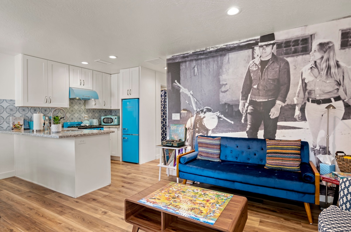 Unwind in the natural light and luxurious appointments of this modern studio nestled up to a city park and attached to our main house. Beautifully renovated and flooded with light, the spacious 375 sq ft is your perfect home-away-from-home for exploring the wonders of Flagstaff and northern AZ. Amenities like plush bedding, a fully-stocked kitchenette, and a smart TV combine with extra touches like laundry, a rainforest shower, relaxing shared patio, and 400 MB wi-fi. Note: No A/C. Welcome!