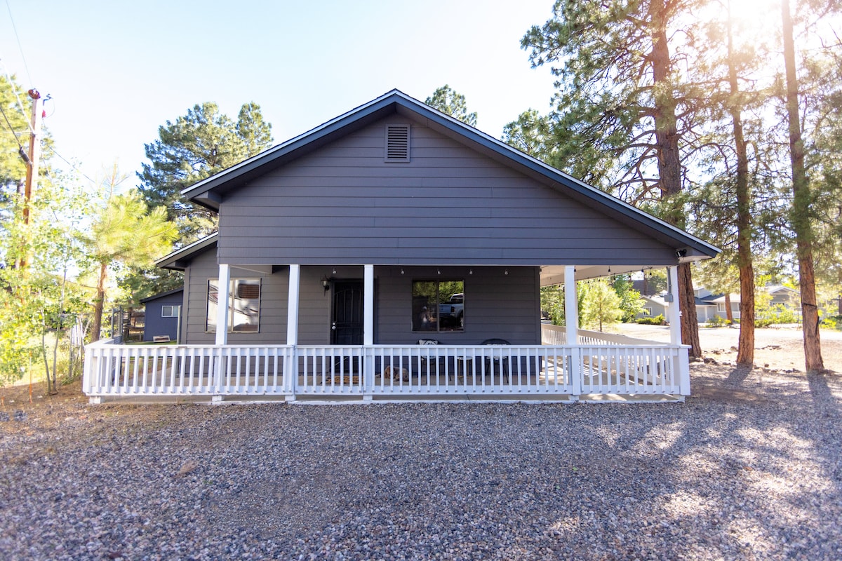 Welcome to Bearadise! Located only an hour and 45 minutes north of Phoenix and 20 minutes south of Flagstaff. At 6,500 ft elevation, you’ll enjoy four seasons of beautiful weather, pine trees, hiking trails, and off road adventures with plenty of parking for your toys! Perfect place to get away and relax, or plan day trips to nearby destinations such as Snow Bowl, The Grand Canyon, Horseshoe Bend, Sedona, and more. Spacious open floor concept, perfect for making memories with family & friends!