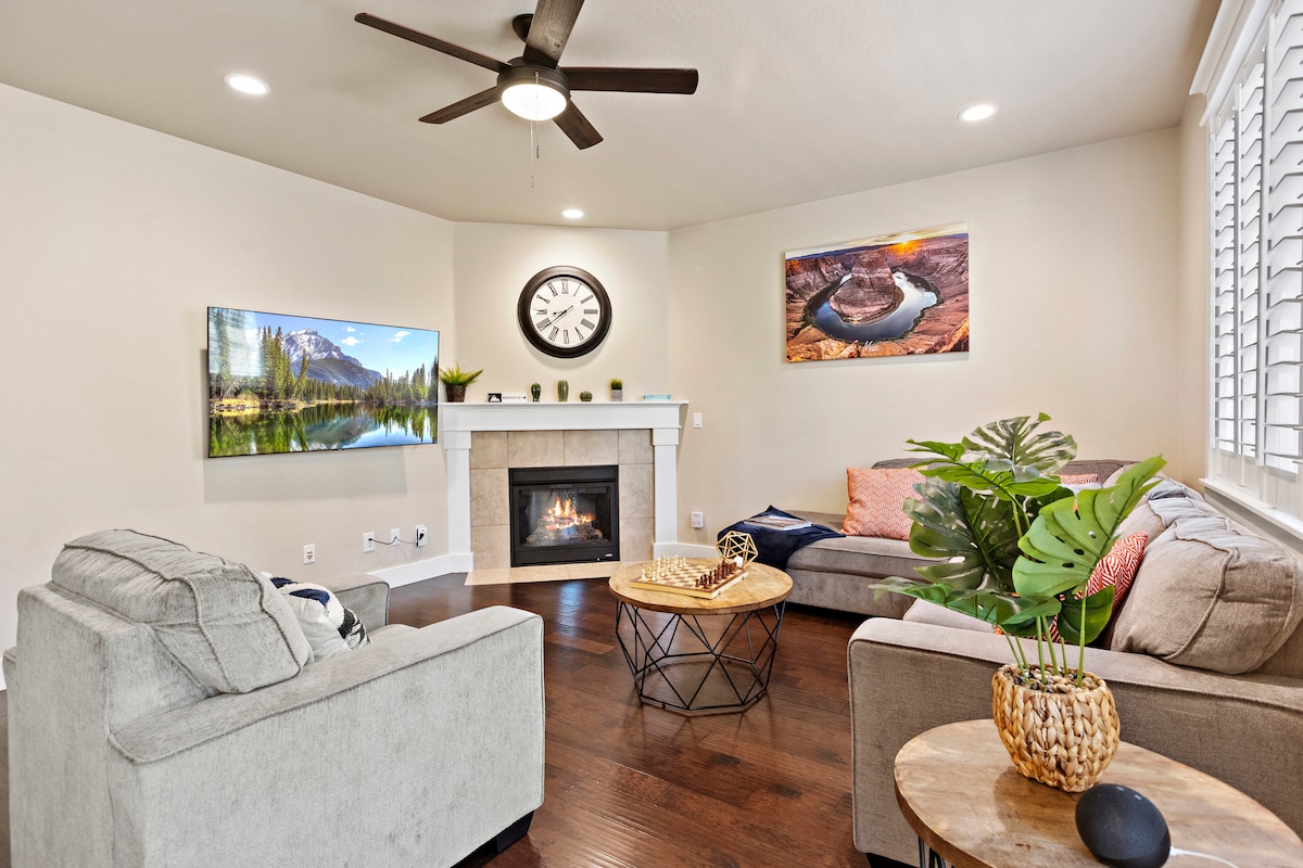 Escape to our cozy 2-bedroom forest cabin in Flagstaff for 4! This single-level retreat offers a perfect blend of rustic charm and modern comfort. Features a gas fireplace, dedicated workspace with fast Wi-Fi, a private deck with a fire pit, and a fenced backyard. Ideal for work, relaxation, and adventure, just minutes from downtown and hiking trails. Your perfect Northern Arizona getaway awaits!