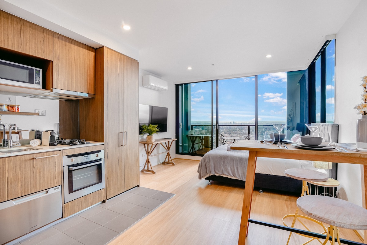 位于墨尔本市中心的优雅1卧室公寓,景色不可思议