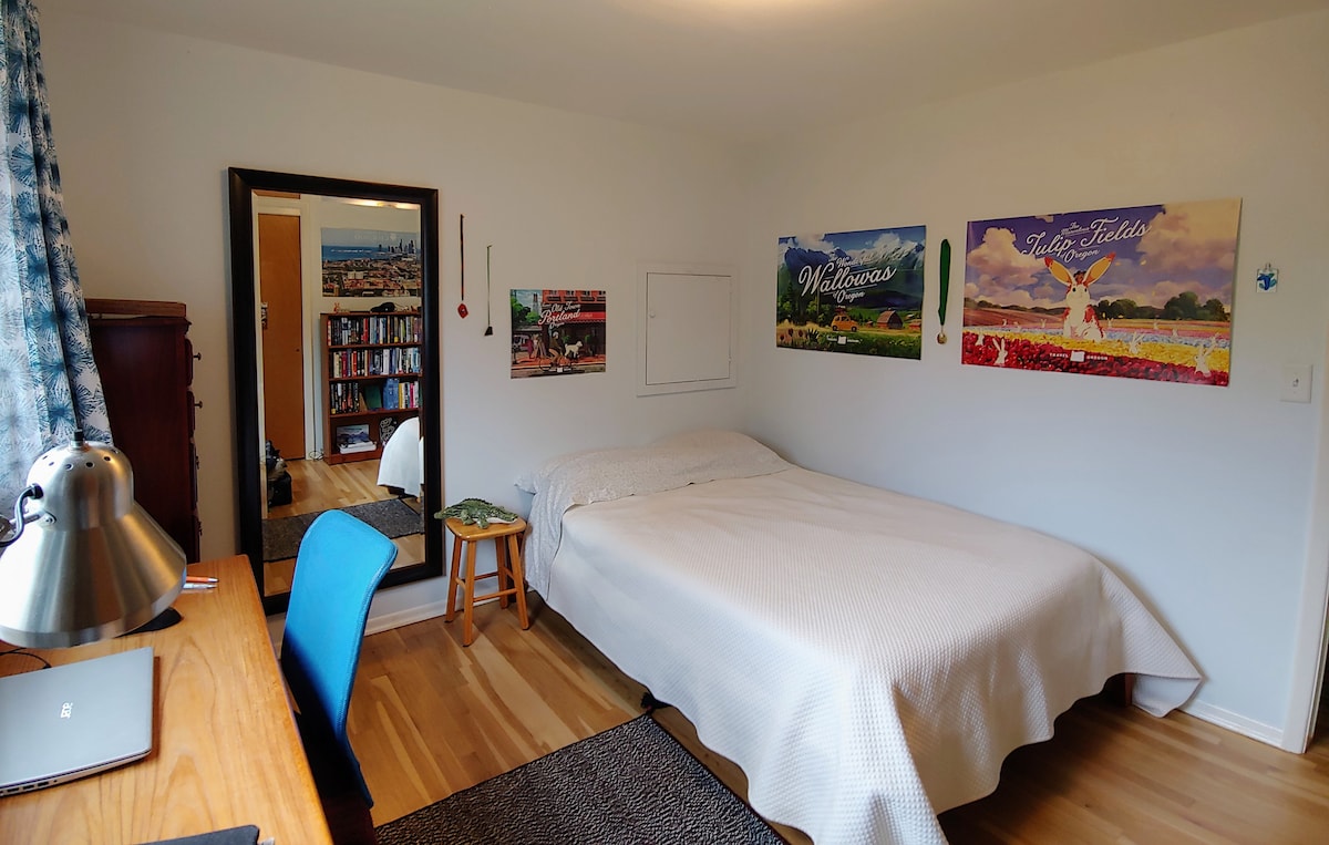 There is one dedicated parking space in front of my garage that is yours to use. Street parking is also available.