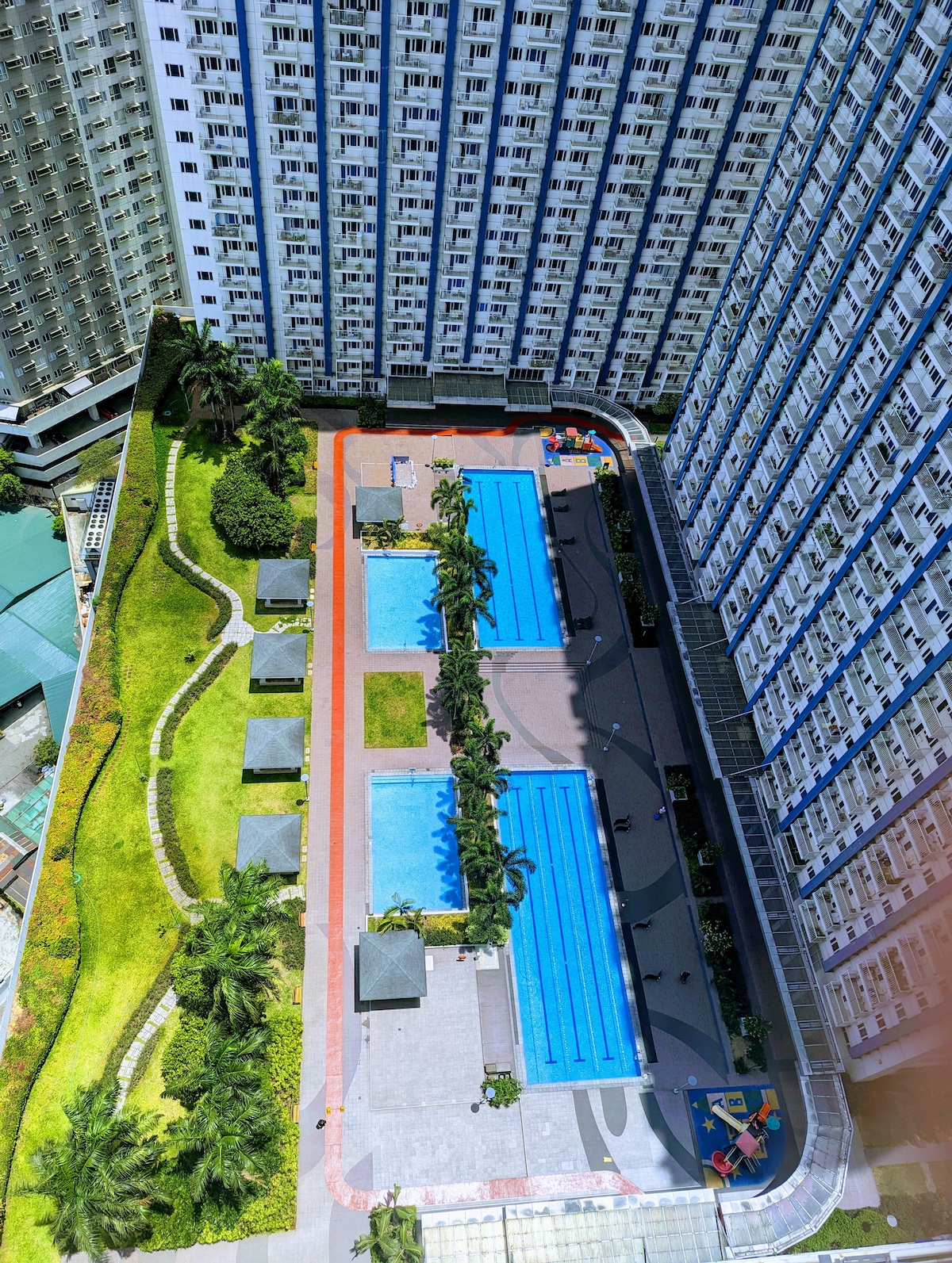 This is a 2-bedroom unit that has access to the balcony thru the master’s bedroom, where you can enjoy the full view of a genuine resort-inspired amenities and high rise skyline view. Our place provides guests the luxury of time and convenience as it is centrally located and within minutes from the Ortigas, Mandaluyong and Makati Central Business Districts. Highly accessible to shopping malls and public transport. The building is guarded 24/7 for your security and peace of mind.