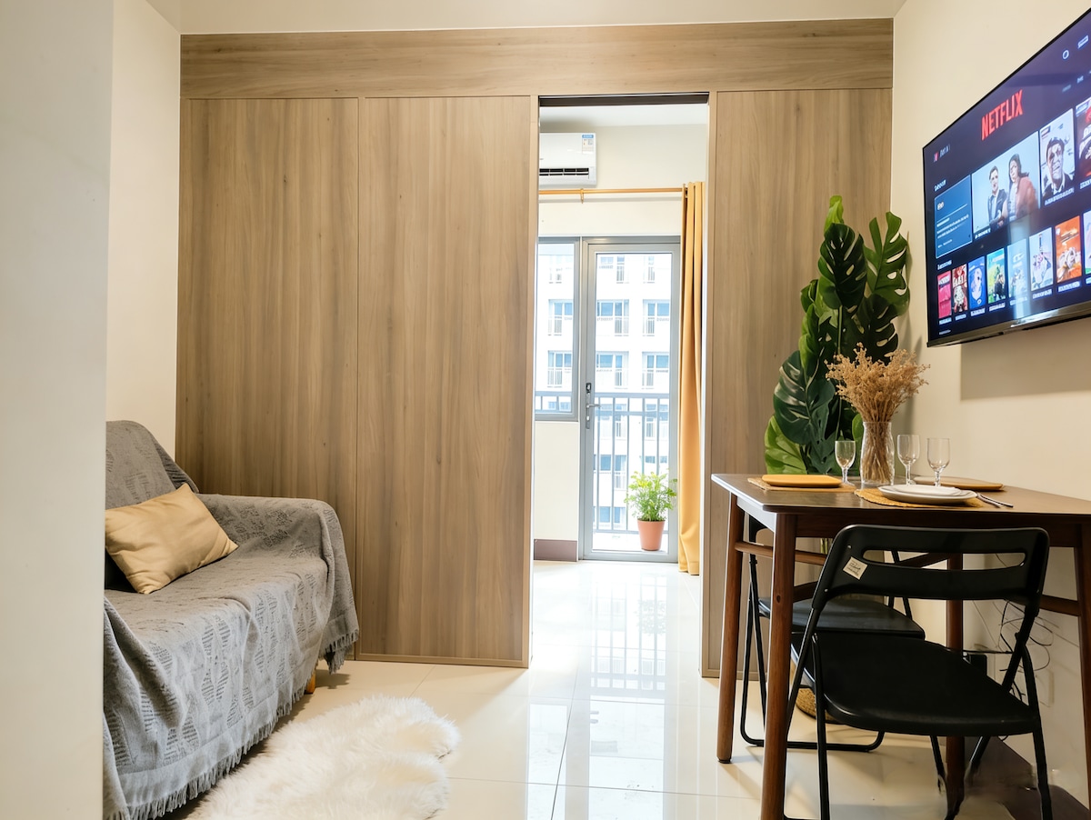 Feel stylish and experience the BGC vibe at this centrally-located place. Get direct access to Uptown Mall. This place is also just across the newly opened Mitsukoshi Mall. Our newly renovated place is bright and airy with a fantastic view of the Uptown Mall fountain show. Take an easy stroll as all major points of interests are just a few mins walk. Feel the energy of Uptown BGC. Shop, dine, or just have a relaxing break at the corner cafe. Come feel the energy of this vibrant community!