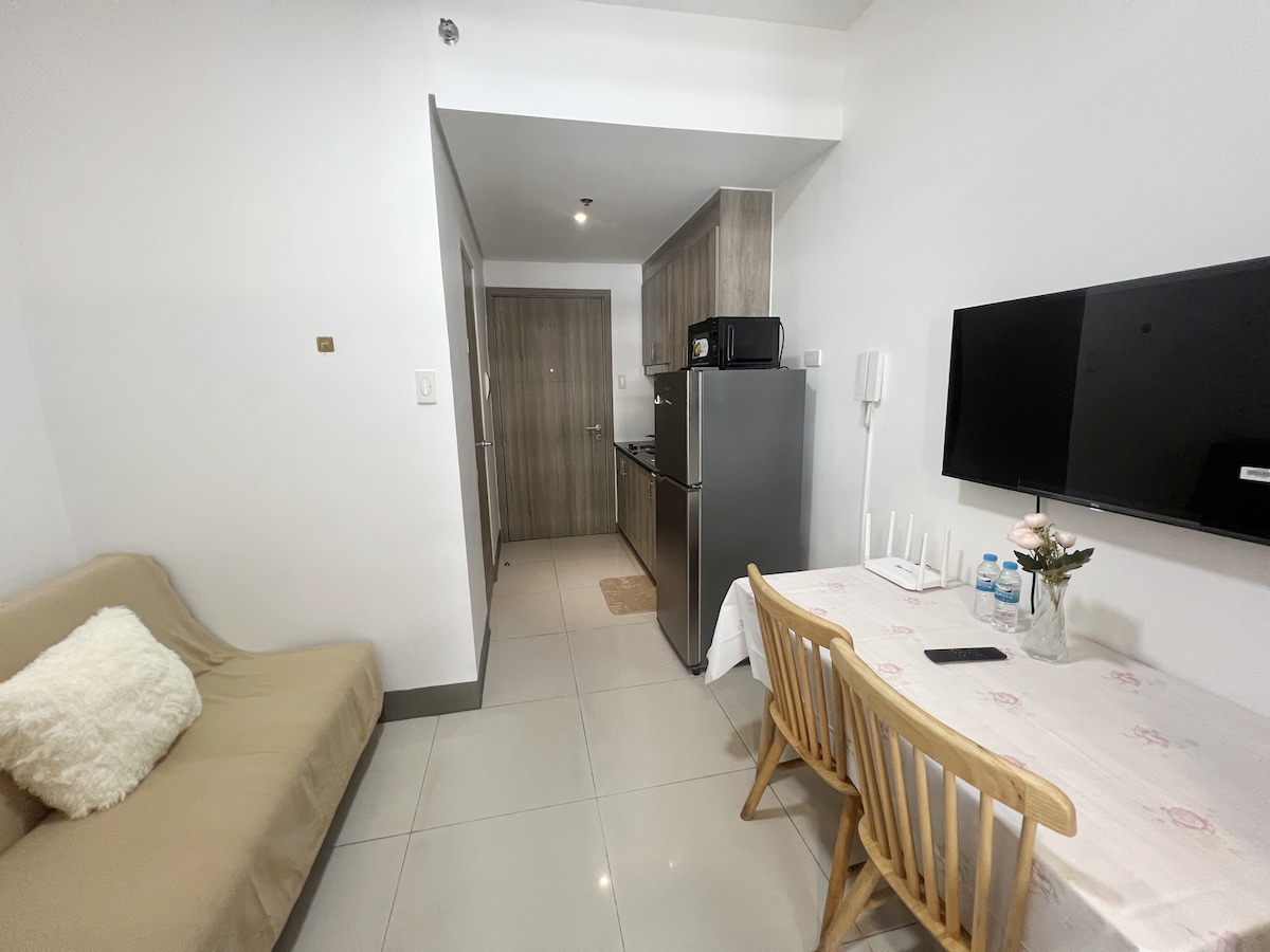 Welcome to Fame T1, your perfect staycation in Mandaluyong! This stylish 1BR condo is ideal for couples, families, or business travelers, accommodating up to 3 guests (extra fee 3rd guests) Prime Location ✔ 5-7 min walk - Shaw & Boni MRT ✔ 10 min walk - Greenfield, Megamall & Shangri-La ✔ 15 min drive - Makati Amenities/Inclusions ✔ WiFi & Netflix ✔ Basic cooking utensils ✔ Toiletries & Towel ✔ Cold AC ✔ Pool & outdoor gym ✔ 24/7 security 🛡 ✔ Parking Book now。