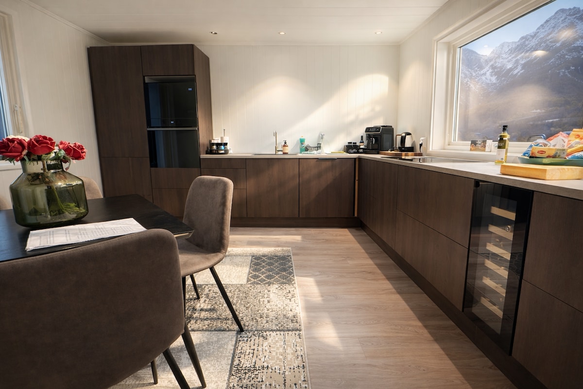 Lofoten is the ultimate place for adventure, but explorers also need sleep! Recharge in a charming and modern rorbu with magnificent views over the ocean and the majestic mountains. With almost no light polution it's a perfect spot to enjoy and photograph the Northern Lights magic, experience an arctic storm or watch the peaks bathe themselves in the red of the Midnight Sun. Close to the water you might dicover you have otters and seals as neighbours. Welcome to your home away from home!