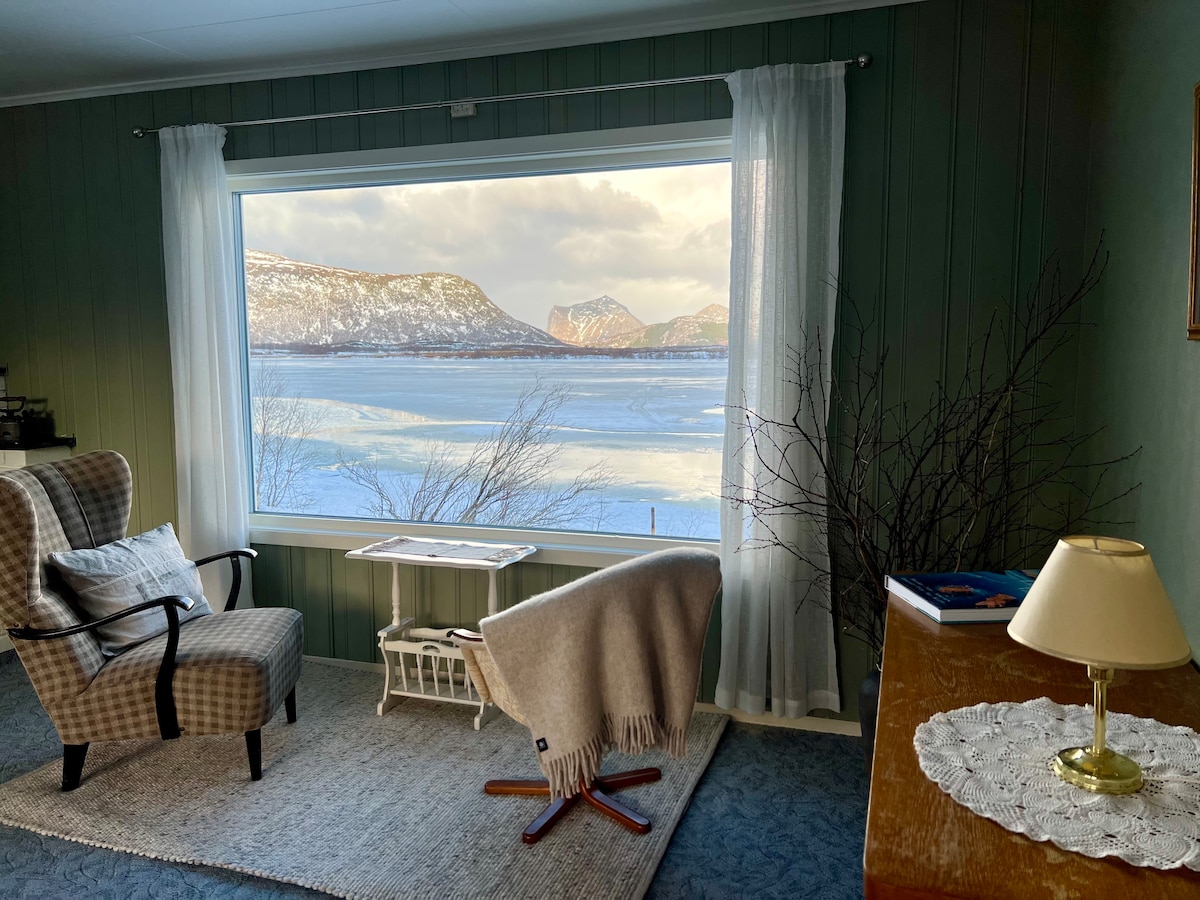 A secluded spot to escape the madness of urban living. Enjoy a pure nature reset in a modern and comfy house where the ocean meets land. The house is recently built in architect designed Scandinavian minimalist style. Experience 360 degree view over the sea and the mountains. Two bedrooms with private bathrooms and separate terrace, fully equipped kitchen/dining room, laundry area, on-site parking. Indulge yourself with northern lights dancing across the sky, while you are relaxing in the bed