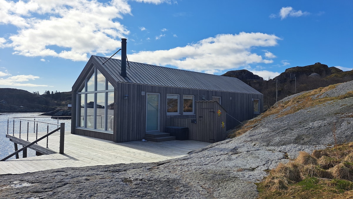 Beautiful cabin right by the water with seaview and surrounded by mountains. Situated in Nusfjord, a small fishermans village, with a nice resturant in walking distance. There are great hiking trails just outside, and you can catch fish from the dock. It is possible to pay and go out to sea with a big boat, or buy fishingcards for the waters abowe.