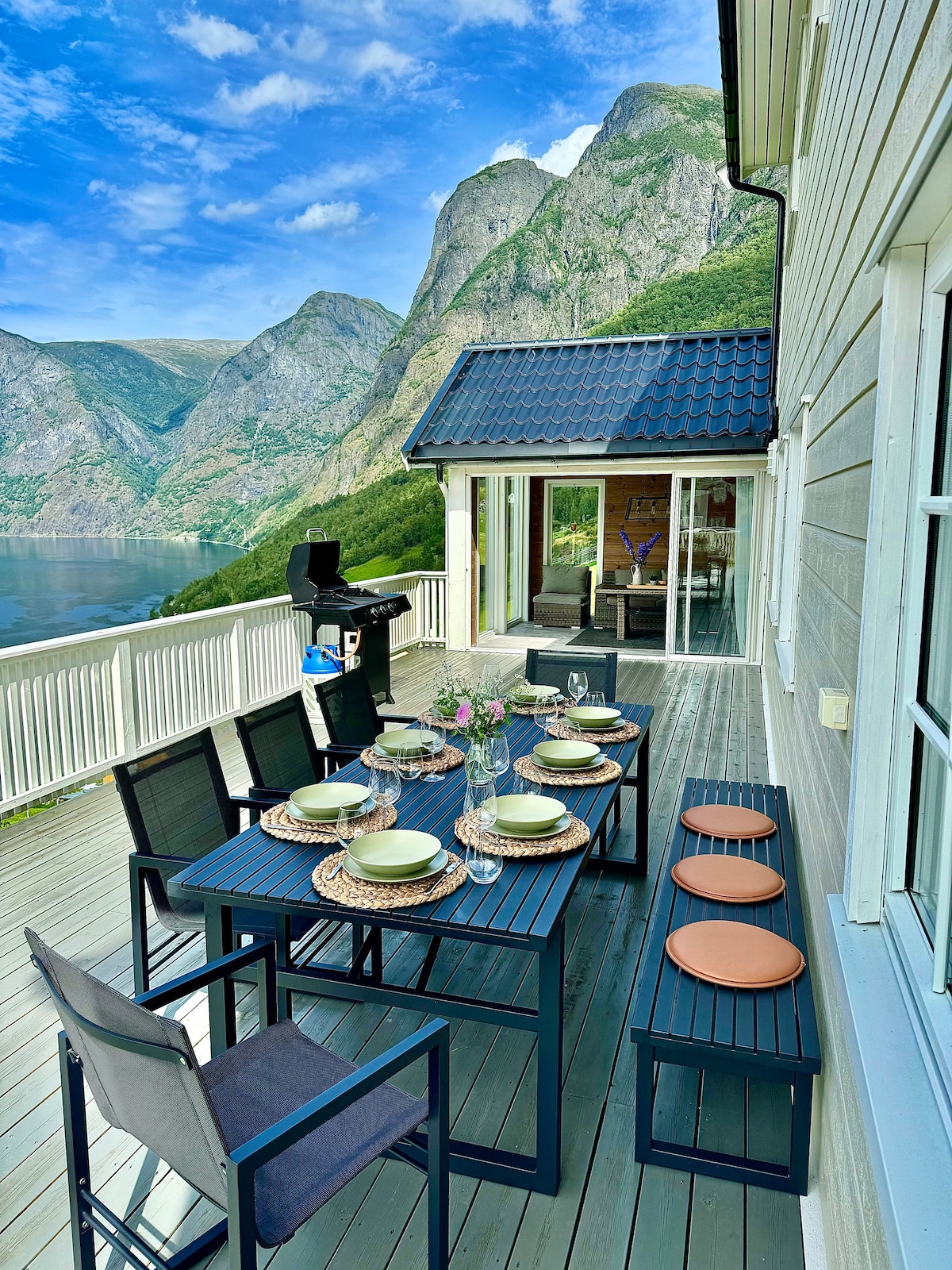 A modern and spacious apartment with private outdoor area, just 50 meters from the fjord. Centrally located in Aurland, perfect for those seeking comfort, peace and easy access to stunning nature. 3 bedroom with King-size 180 cm double beds Private outdoor dining with awning Hotel-quality linens and towels Easy self-check-in Street parking Free WiFi Underfloor heating in living room, kitchen and bathroom Follow us on @BaseAurland for hiking inspiration and photos of the breathtaking landscape.