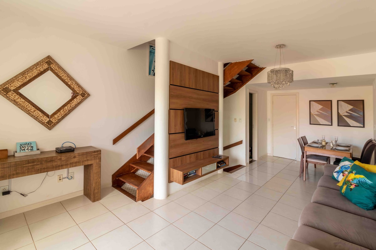 Casa em Condomínio frente Orla com infraestrutura p práticas esportivas. Imóvel praiano c visão total para o mar . Ideal para descansar e trabalhar remoto , wi-fi 500 mega . 1/4 com ar-condicionado , roupas de cama e banho , sala com sofá cama, piscina , garagem privativa . Sinta-se acolhido e abraçado pela experiência incrível desse lugar tranquilo e bem localizado , beira mar e próximo a Mercados, Farmácias , Restaurantes , Academia, 10 min. do Aero e 25 min. da Rodoviária. Bem vindo(a)