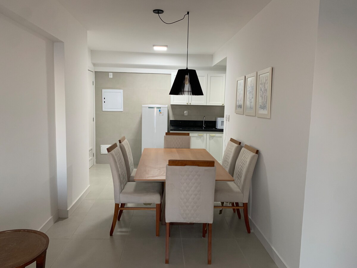 Imagine despertar em um verdadeiro refúgio na Praia do Flamengo. Este apartamento térreo, é um convite ao conforto e praticidade com 2 dormitórios, 2 banheiros , sala de estar, jantar, varanda, quintal onde a brisa do mar transforma a sua área Gourmet em um espaço único. Totalmente mobiliado, bem decorado e climatizado, situado a 100m da praia, com garagem para 1 carro. O imóvel acomoda com elegância e conforto 6 pessoas. Boa localização, acesso fácil, ambiente excelente para suas féria.