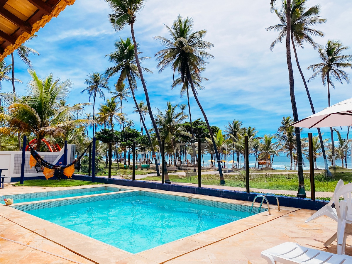 Welcome to Village Pé na Areia! We are located right on the beachfront at Praia do Flamengo in Salvador, just 13 minutes from the airport! Perfect for families and groups of friends, our home offers the ideal balance of comfort, leisure, and tranquility, with a breathtaking ocean view and direct access to the beach – just open the gate and step onto the sand! Enjoy a privileged location to make unforgettable memories in Salvador!
