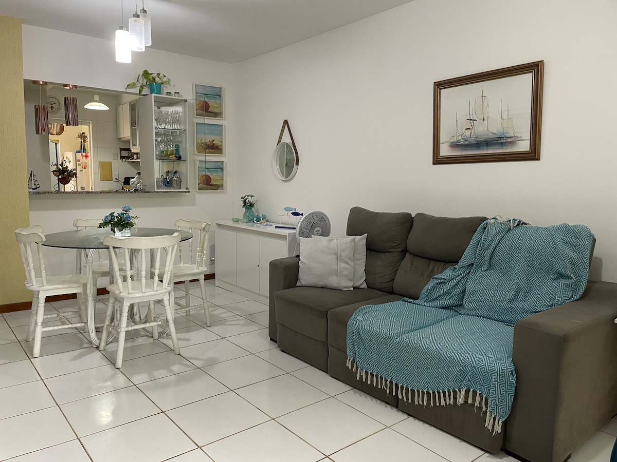 Apartamento térreo, 100 m da praia com 2 dormitórios, sendo um suíte com varanda, 2 banheiros , sala de estar, jantar, cozinha americana, área de serviço, quintal onde a brisa do mar transforma a sua área Gourmet em um espaço único. Totalmente mobiliado, bem decorado e climatizado, com garagem para 1 carro. O imóvel acomoda com elegância e conforto 4 pessoas. Boa localização, acesso fácil, ambiente excelente para suas féria em família e trabalho remoto.