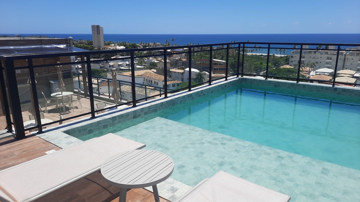 Deslumbrante apartamento finamente decorado com 2 quartos, sendo uma suíte, ar condicionado split em todos ambientes controlados individualmente, vista mar frontal. Acomoda confortavelmente 6 pessoas (2 camas de casal + 1 sofá-cama). Desfrute das comodidades do prédio, como a incrível piscina VISTA MAR no rooftop, academia completa climatizada com sala de spinning, 2 salas de coworking e brinquedoteca. Deixe-se envolver pela magia da Bahia e comece a criar memórias inesquecíveis!
