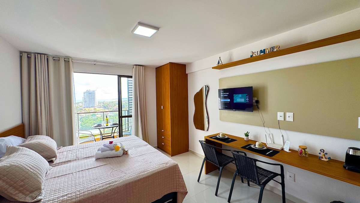 Modern Comfort and Prime Location! Settle into a modern, air-conditioned, and fully equipped space with a kitchen, double bed, and a balcony with city views. Just 280m from the beach, you’ll be close to restaurants and the best attractions in Salvador. The building offers a pool, coworking space, and gym for your convenience. Everything you need for a comfortable and practical stay! Book your stay and experience the best of Salvador!
