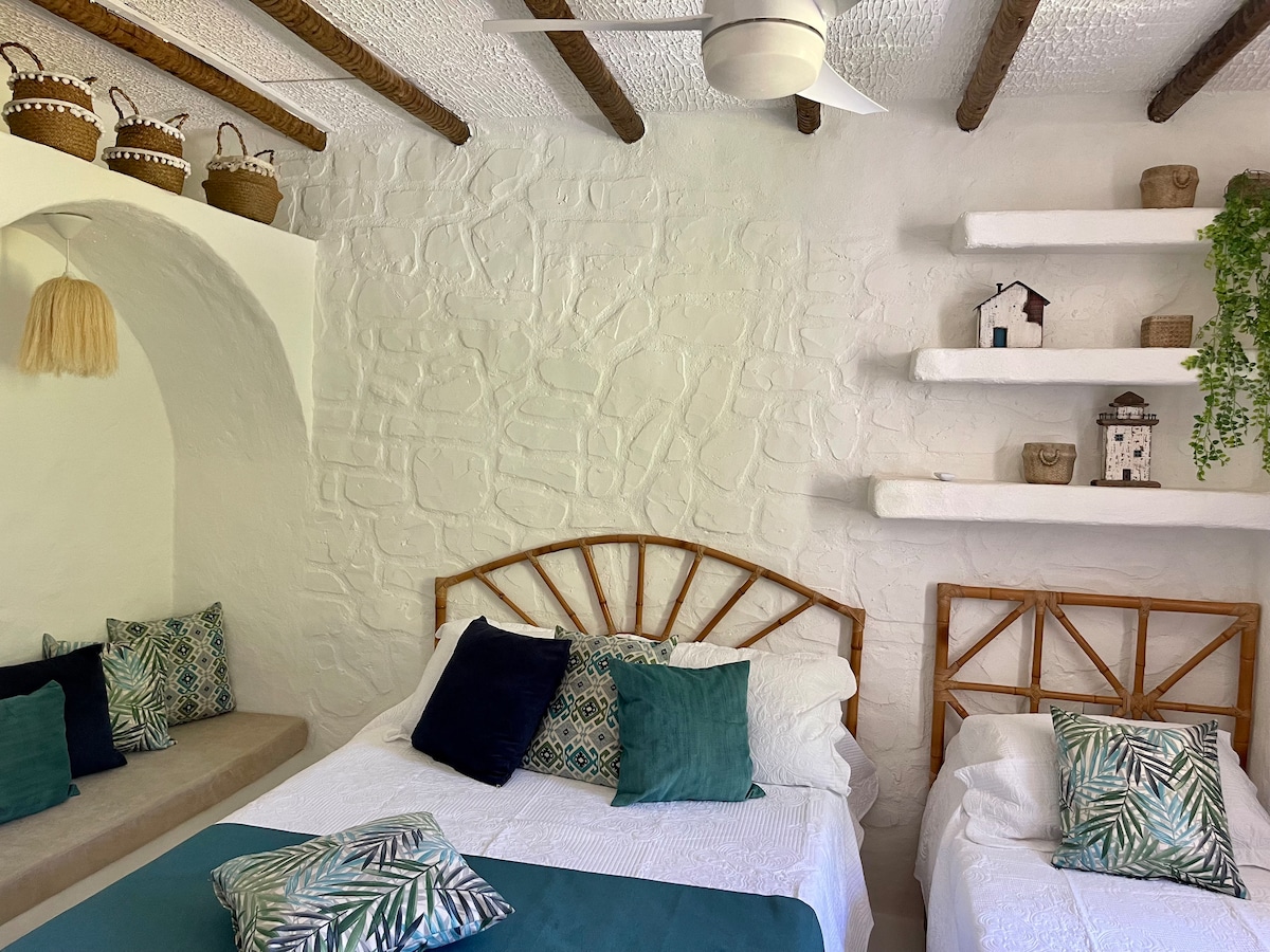 Village type house in a gated community with green spaces, fully equipped kitchen. Two bedrooms with air conditioning, two double beds with D33 orthopedic mattress and comfortable pillow top. Two sofas bed in the living room with fan. White bed and bath linens 100% cotton 180 threads, sanitized after each guest. Portable barbecue, table and shower in the back. Close to restaurants, delis, pharmacies and supermarkets.