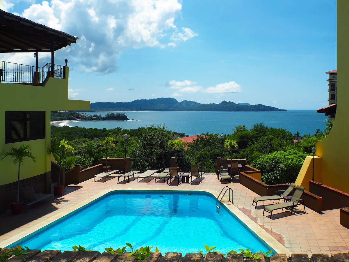 Welcome to "La Casa De Las Vistas", aka "The House of Views". Located high on the Flamingo peninsula, this unique property sports a 180° view of the famous Flamingo Beach, Potrero Bay, and a bird's-eye view of the brand new beautifully constructed Flamingo Marina. Whether it's enjoying a magical sunset from our indoor/outdoor air conditioned balcony or waking up to a beautiful sunrise from your deluxe ocean view bedroom, this property provides a true tranquil experience.