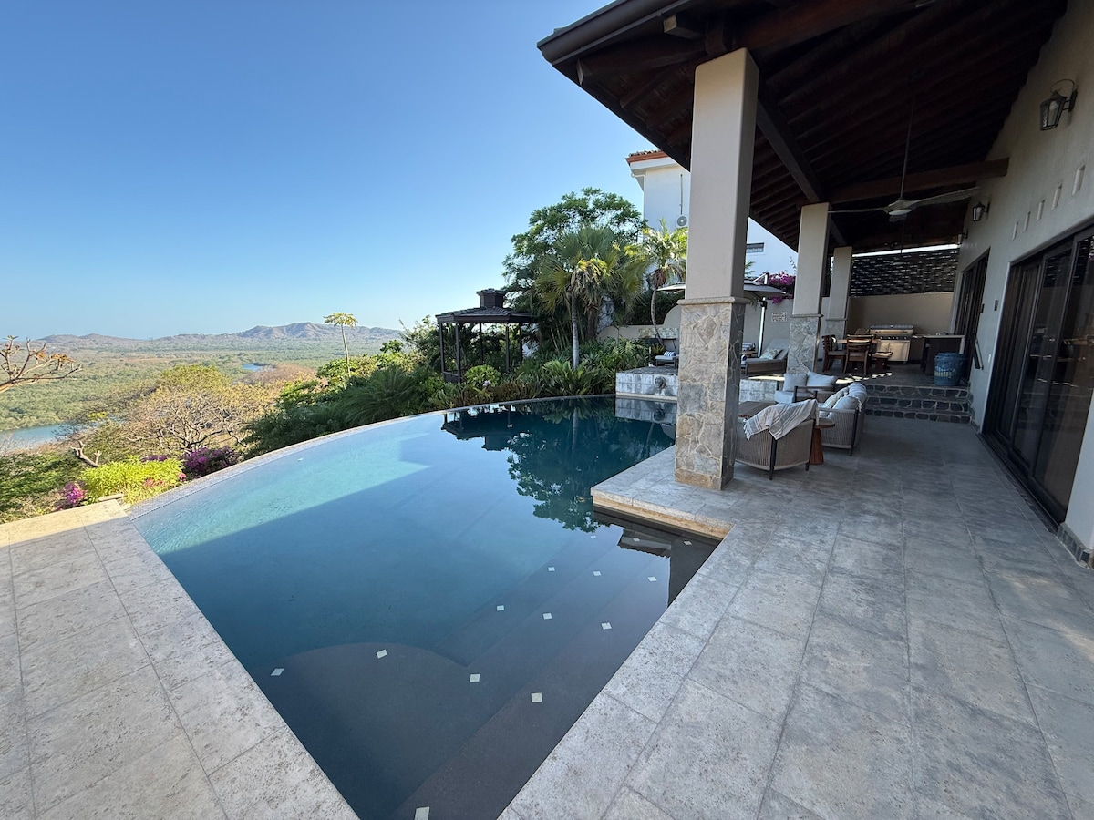 Nouvellement rénovée. Séjournez dans une superbe villa avec piscine à débordement privée, située dans une communauté sécurisée, proche des plus belles plages du Costa Rica. Entièrement rénovée en 2025, elle offre confort moderne et vue imprenable. • 2 chambres climatisées avec salles de bain privées • Espace ouvert avec cuisine équipée et salon cosy • Salle à manger extérieure pour admirer des couchers de soleil spectaculaires • Wi-Fi, alarme et parking clôturé