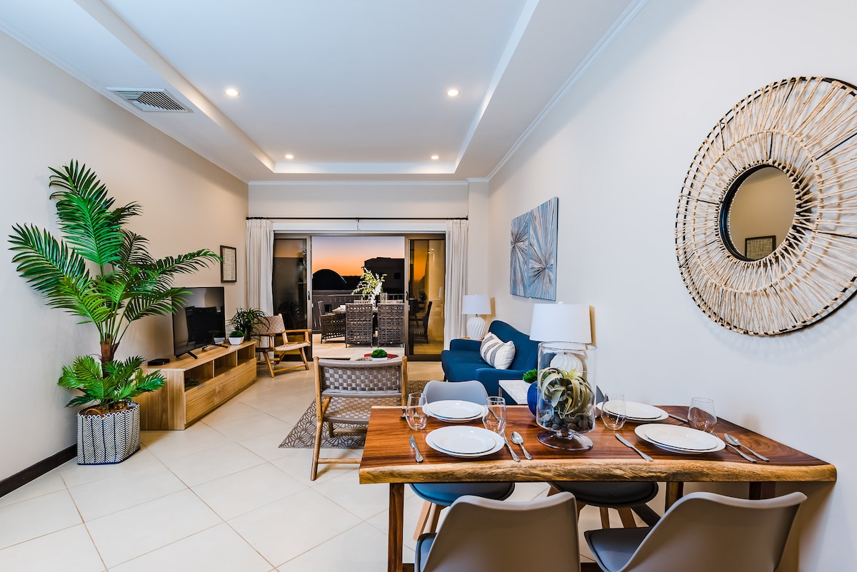 Reserva Condo is an incredible resort! Golf, Beautiful beach, Gym, Spa, Beachfront club with Restaurant! All the amenities, Bikes, Kayaks, Wifi at the beach, Stand Up Paddle boards! Our condo was just fully remodeled and is brand new! A/C thru out, Fast Wifi, 55 inch smart tv. Both bedrooms have king size beds, Ground floor with zero steps! Walk right in and walk right off the balcony to the pool with amazing sunset views! Our nightly rate is very great and you got to be inside Reserva Conchal!