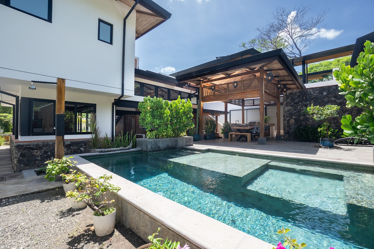 Nouvellement rénovée. Séjournez dans une superbe villa avec piscine à débordement privée, située dans une communauté sécurisée, proche des plus belles plages du Costa Rica. Entièrement rénovée en 2025, elle offre confort moderne et vue imprenable. • 2 chambres climatisées avec salles de bain privées • Espace ouvert avec cuisine équipée et salon cosy • Salle à manger extérieure pour admirer des couchers de soleil spectaculaires • Wi-Fi, alarme et parking clôturé