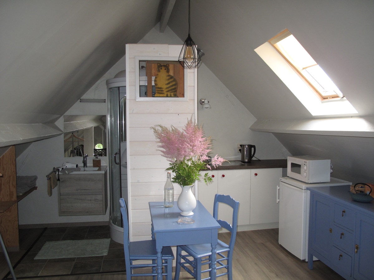 If you are a lover of nature and you prefer privacy, then The Art of Ein-Stein is the perfect place for you. The farm is located in the middle of the nature and woods. Breakfast is possible, please ask. There’s an idyllic sleeping place, rain shower and salon upstairs. Downstairs there’s an installed kitchen where you can cook, a dining place and a big lounge. Many bicycle and walking routes. You can rent 2 electric mountainbikes!